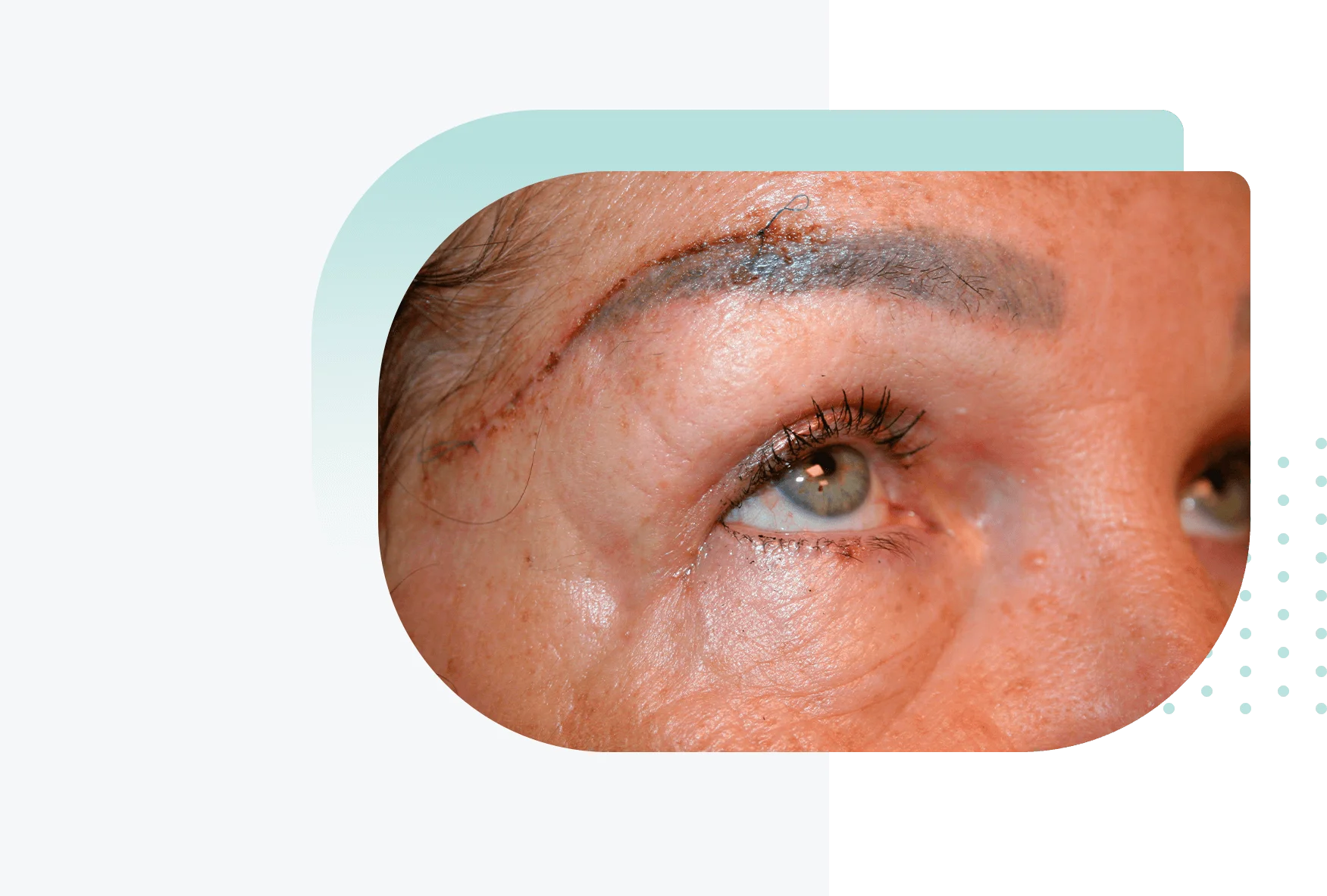 - Mirada cansada o pesada por exceso de piel y baja posición de la ceja